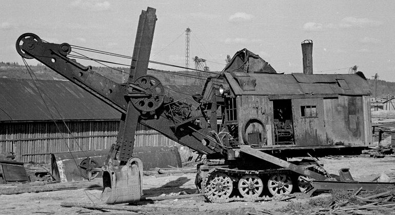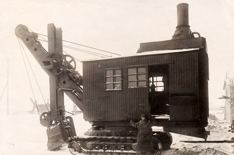 А это советский паровой гусеничный экскаватор ППГ-1,5 (1,5 — объем ковша в кубометрах). Ковровский завод освоил производство таких машин в 1934 году.
