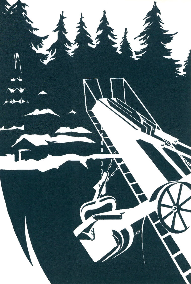 В заключение — очень лакоичный и в то же время символично-выразительный рисунок заключенного Дмитлага, художника Константина Соболевского, на котором стальной ковш "Кавровца" грозно и неотвратимо надвигается на маленькую заснеженную церквушку, оказавшуюся помехой на пути в светлое будущее.