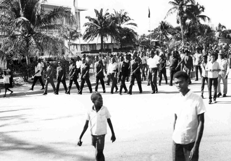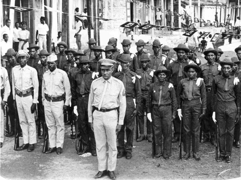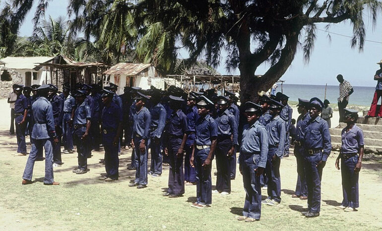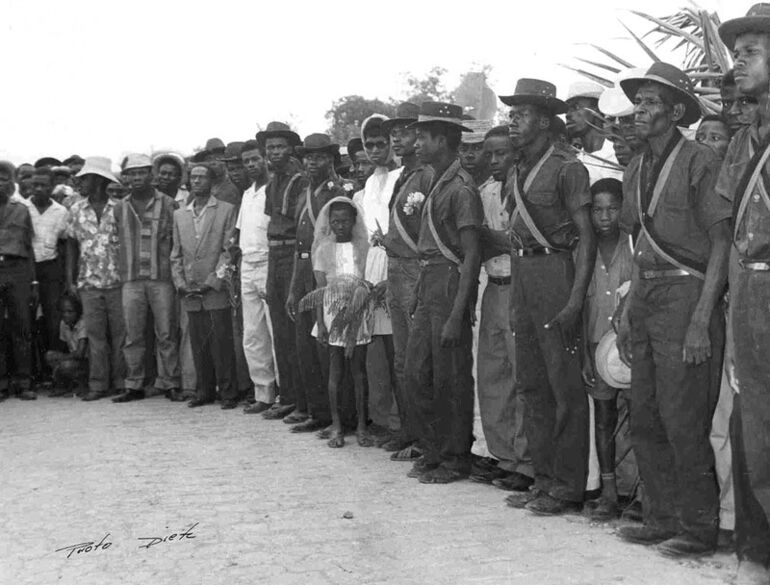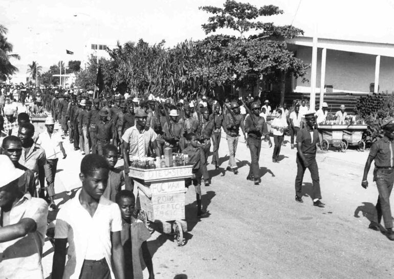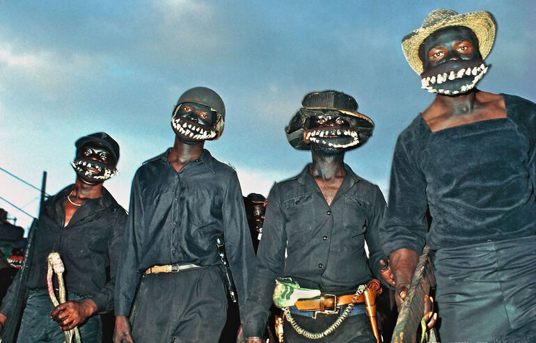 Одна из немногих цветных фотографий тонтон-макутов, сделанная в 1977 году и выглядящая как реклама кроссовок "Адидас".