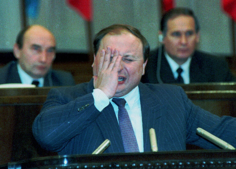 Москва. 1993 г. Первый заместитель председателя Совета министров на съезде народных депутатов делает доклад об экономическом положении.