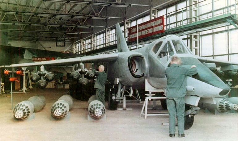 11-й предсерийный экземпляр, ставший образцом для массового производства, а ныне — выставленный в экспозиции Монинского авиамузея. Су-25 выпускался с 1978 по 2005 год и был растиражирован в количестве 1520 штук, из них около 200 двухместных учебно-боевых Су-25УБ.