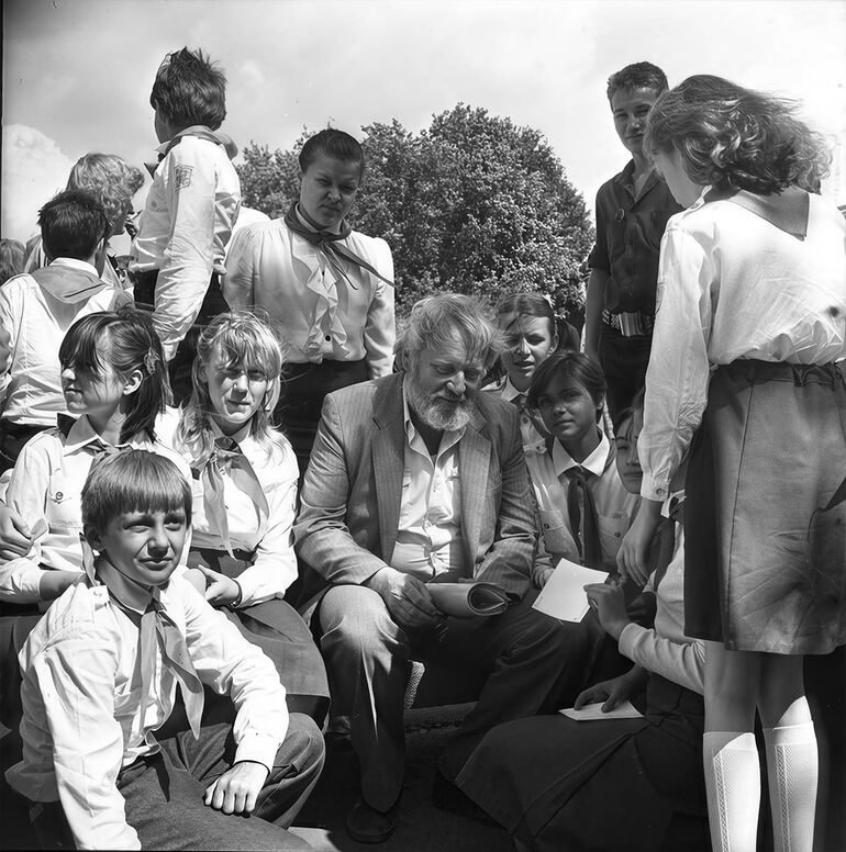 1980-е. Игорь Можейко на встрече с читателями в пионерском лагере