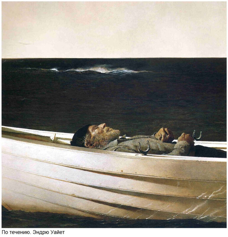 «В дрейфе» Эндрю Уайет предлагает нам создать собственную историю: рыбак умер (как на похоронах викингов) или просто спит?