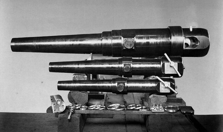 Шестидюймовое, девятифунтовое и четырехфунтовое стальные казнозарядные орудия.