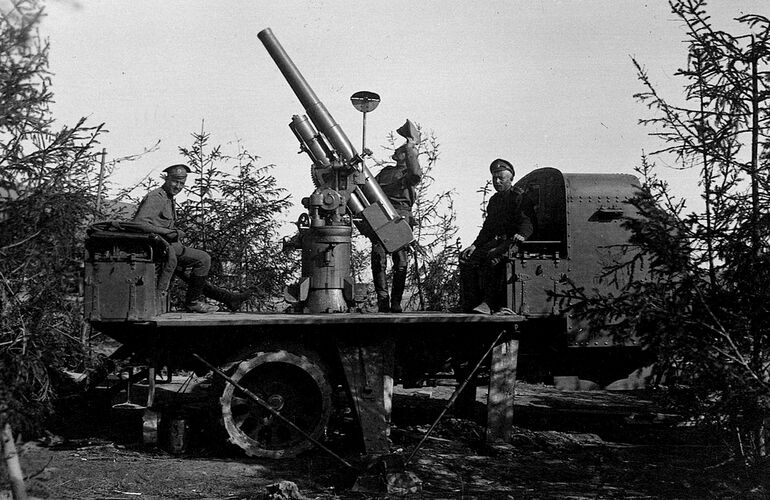 Трехдюймовая самоходная зенитная пушка Лендера на полубронированном шасси "Руссо-Балт".