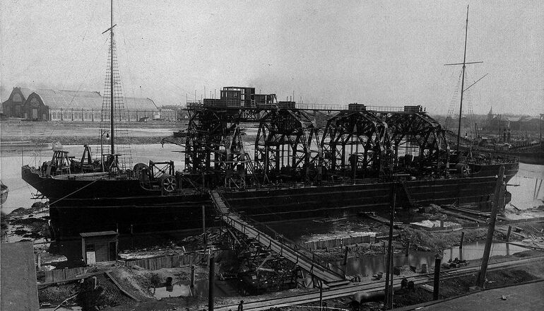Уникальное спасательное судно-катамаран "Волхов". Построено в 1915 году и до сих пор находится в строю российского флота под названием "Коммуна".