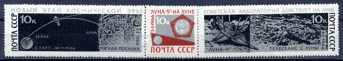 Советская сцепка коллекционных почтовых марок, посвященная программе "Луна-9".