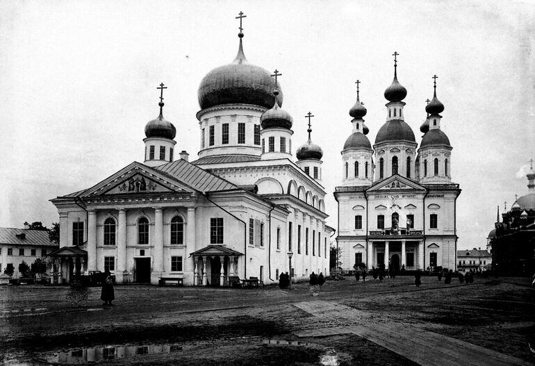Далее — подборка иллюстраций, относящихся как к "старорежимному" Сарову со Свято-Успенской пустынью, так и ко времени его превращения в ядерный арсенал. А сюрреалистически-безумное сооружение на верхней фотке — здание саровского городского драмтеатра, построенное, как несложно догадаться, уже в постсоветские времена. По-моему, оно замечательно олицетворяет нынешнюю эпоху росийской истории.