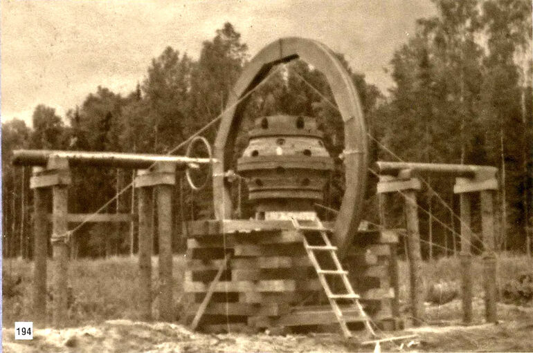 Деревянный макет боезаряда РДС-1 на каком-то испытательном стенде, назначение которого мне неведомо.