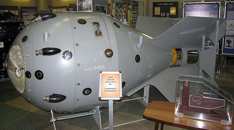В Сарове-Арзамасе разработали и изготовили первую советскую ядерную бомбу РДС-1, успешно испытанную 29 августа 1949 года. Официально ее так и не приняли на вооружение, однако, в 1949-51 годах на том же заводе №551 собрали еще 28 таких бомб, которые хранились на заводской территории в подземном железобетонном бункере под охраной спецполка МГБ. Это был "зародыш" советского ядерного потенциала.