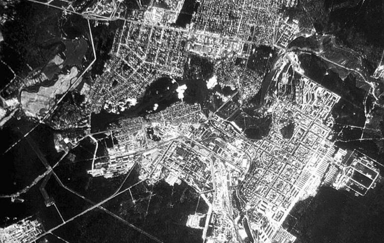 Снимок Сарова с американского разведывательного спутника. Внимательные и любознательные могут сравнить его с картой.