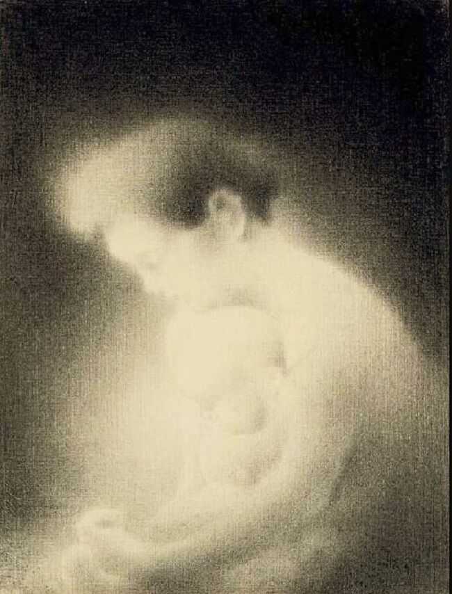 Монохромные рисунки цветными карандашами также демонстрируют тонкую работу со светом и тенью. Они были оценены Синьяком как «истинные шедевры».