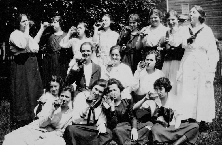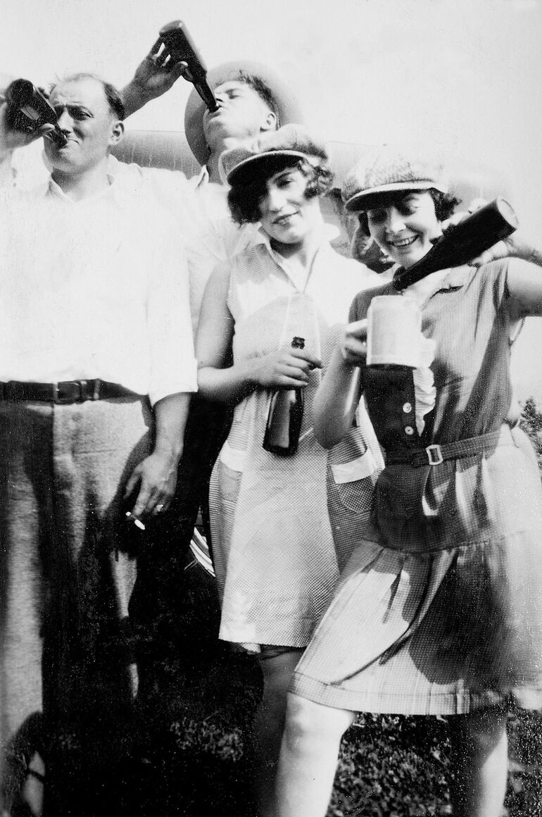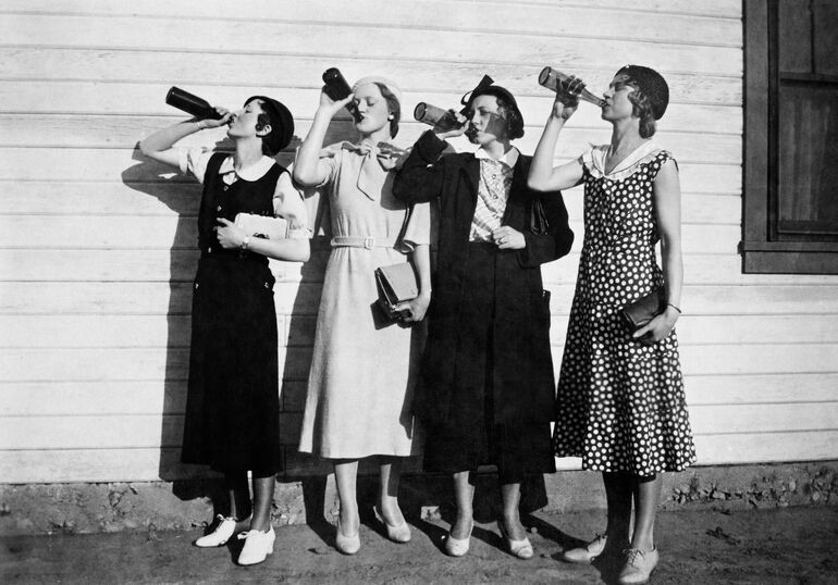 1925. Четыре женщины выстраиваются вдоль стены и залпом выпивают бутылки спиртного