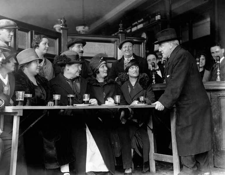 1926. Преподобный Бейкер беседует с дамами, пьющими пиво в таверне «Касл», Лондон