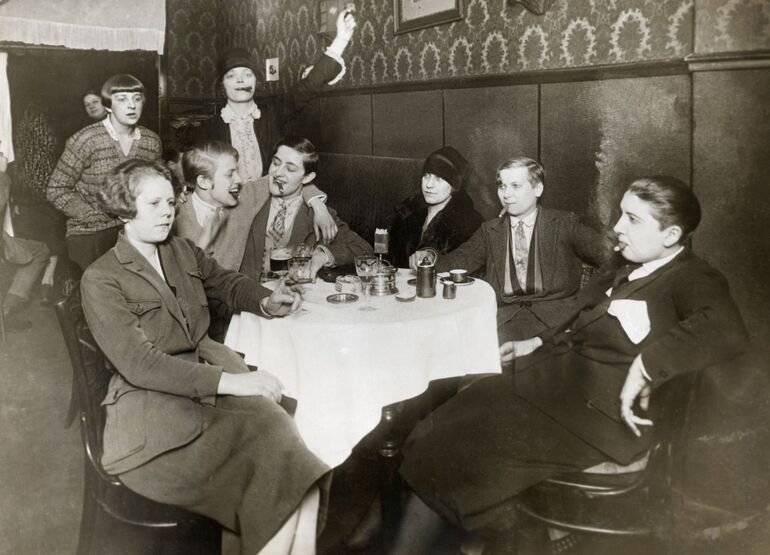 1927. Группа немецких женщин демонстрирует свое равенство, куря сигары и переодеваясь в мужчин во время встречи курительного клуба в берлинском кафе