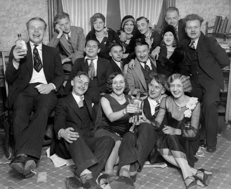 1925. Двое мужчин и две женщины распивают спиртные напитки во время сухого закона