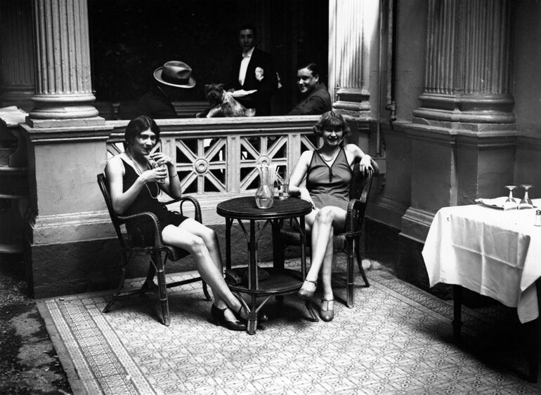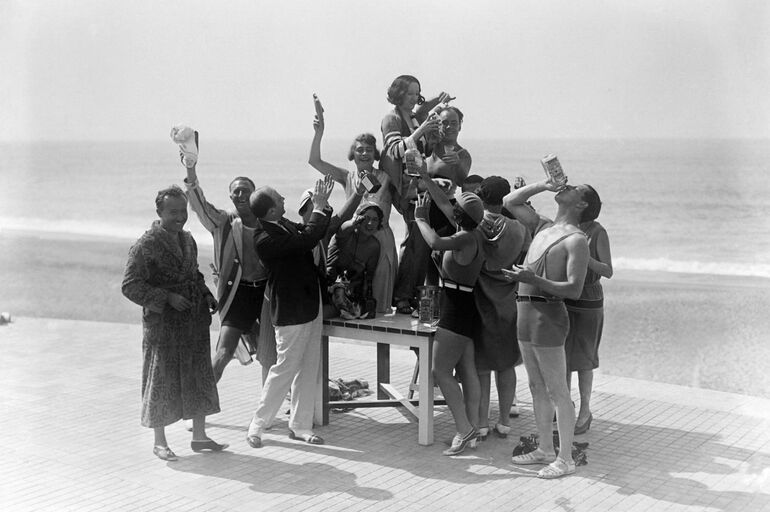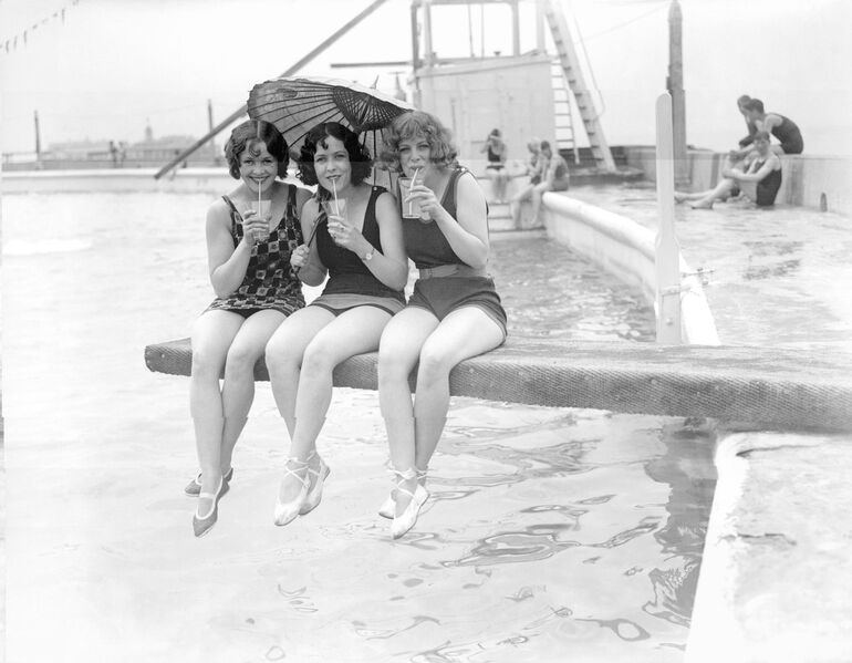 1929. Две женщины в купальных костюмах пьют напитки во время парижской жары
