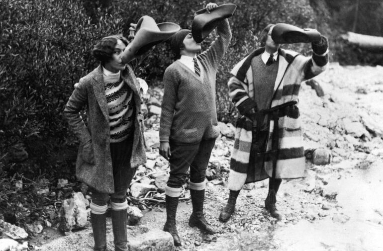 1929. Женщины из организации Trail Riders используют свои шляпы в качестве сосудов для питья, чтобы освежиться родниковой водой из горных источников во время перерыва в походе по Канадским Скалистым горам