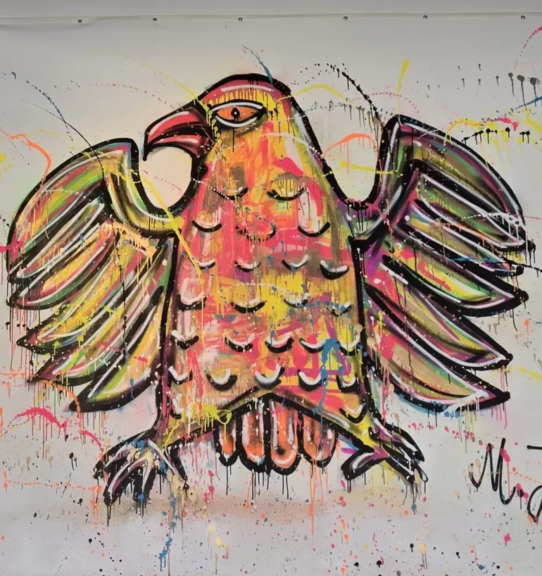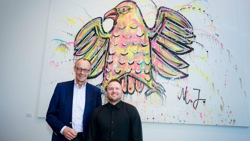 Канцлер Германии Фридрих Мерц повесил на стену своего офиса в Бундестаге новый федеральный орёл: яркий, дикий, в стиле поп-арт. "Орёл-силач" – это граффити-заявление от известного в регионе художника из Тюрингии Марка Юнга.