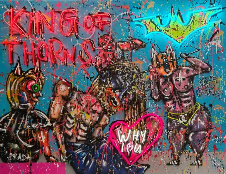 Изображение завораживает просто своими яркими цветами, и ценители также найдут в нем отголоски работы Караваджо «Увенчание терновым венцом».