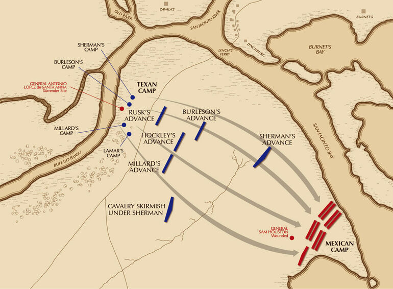 Карта-схема битвы при Сан-Хасинто.