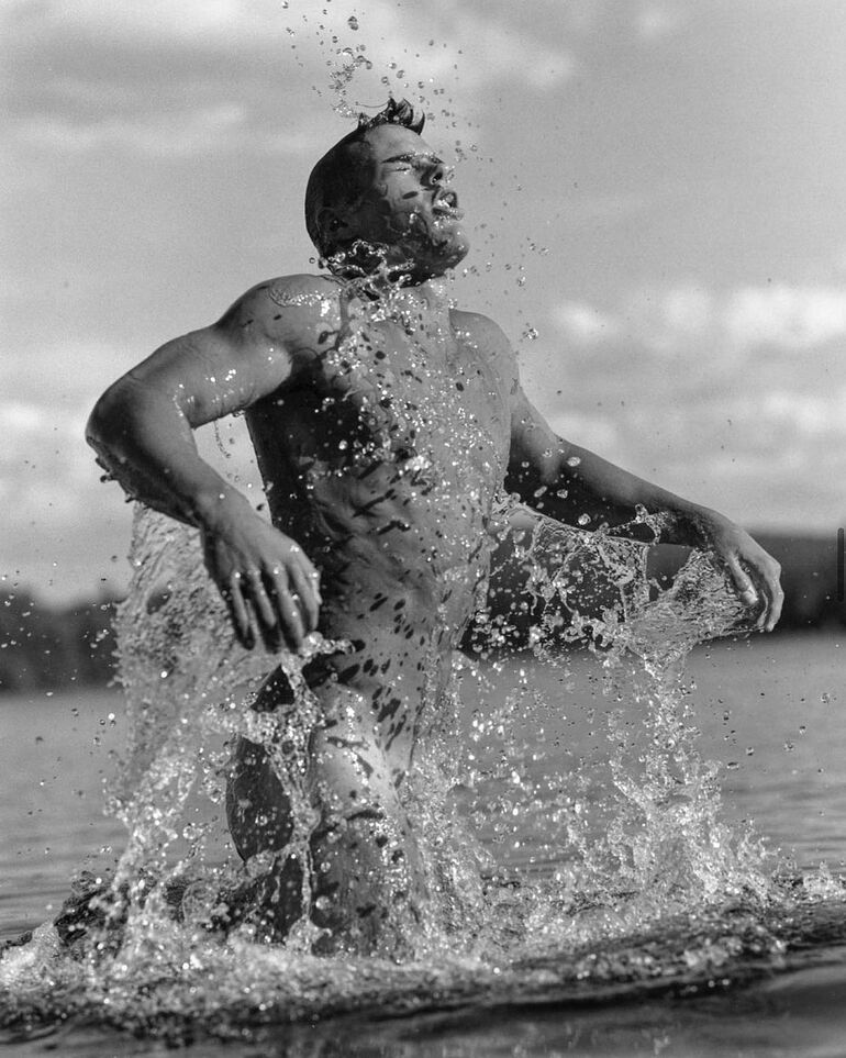 Если на чб снимке есть полу/голые мужчины, собаки и вода, то скорее всего это работа известного фэшн фотографа Вебера.