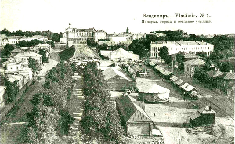 450. Вид с колокольни Никитского храма на ярмарку, город и реальное училище