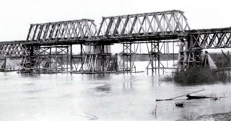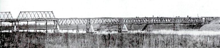 457. Мост Рязано-Владимирской узкоколейной железной дороги через Клязьму. Фасад среднего пролета. 1900