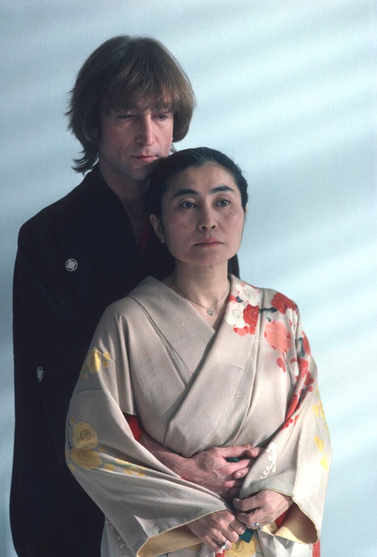 1980. Джон Леннон и Йоко Оно позируют в галерее в районе Сохо, Нью-Йорк, 26 ноября
