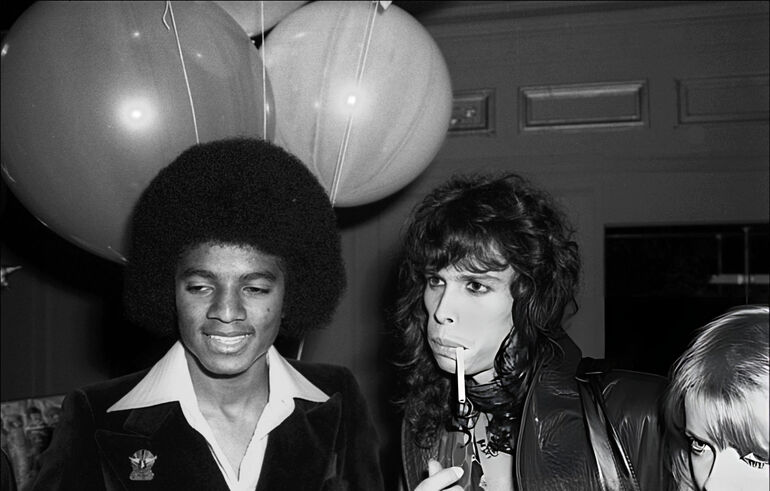 1977. Майкл Джексон из группы Jackson 5 и Стив Тайлер из группы Aerosmith посещают вечеринку, посвященную битломании, в клубе Studio 54 в Нью-Йорке
