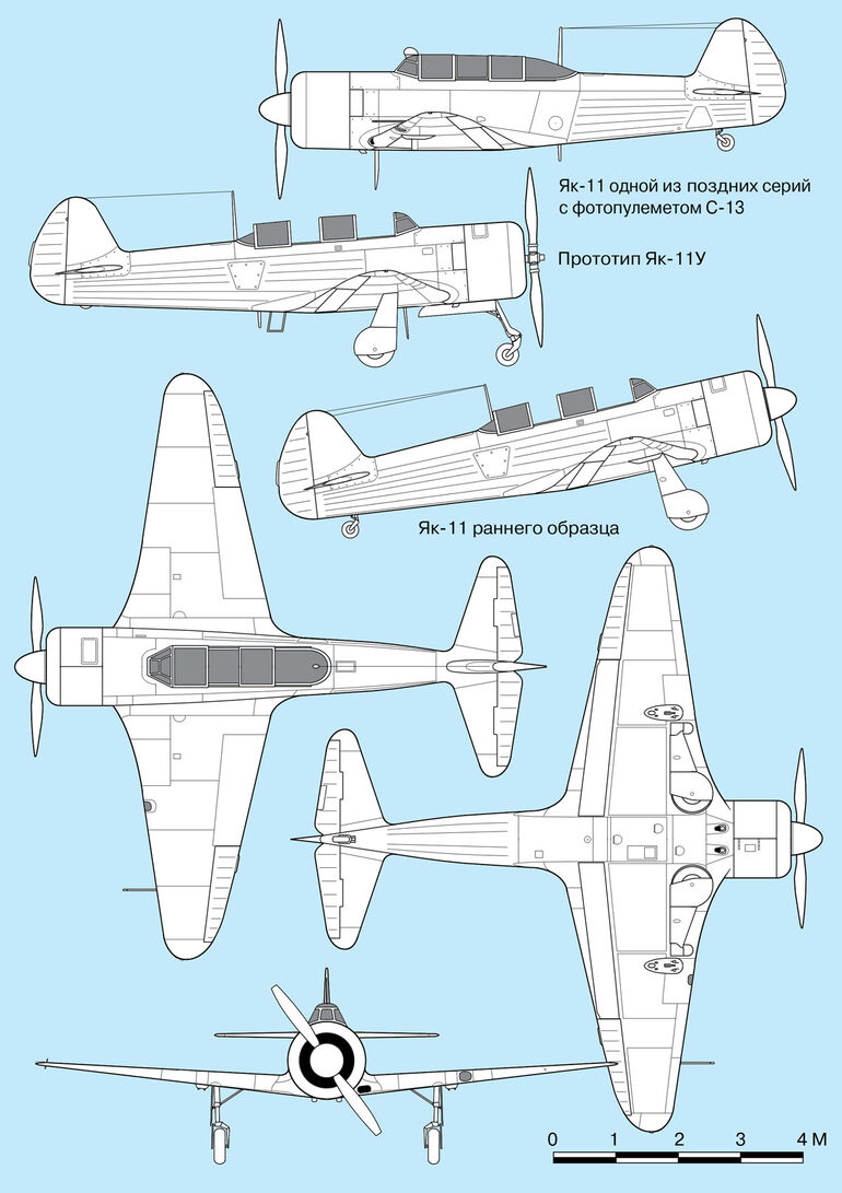 Первый прототип Як-11, носивший обозначение Як-3У и сделанный на базе истребителя Як-3. Основное отличие от более поздних серийных машин — убирающееся хвостовое колесо.