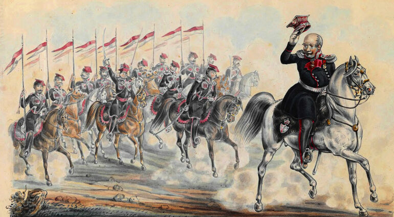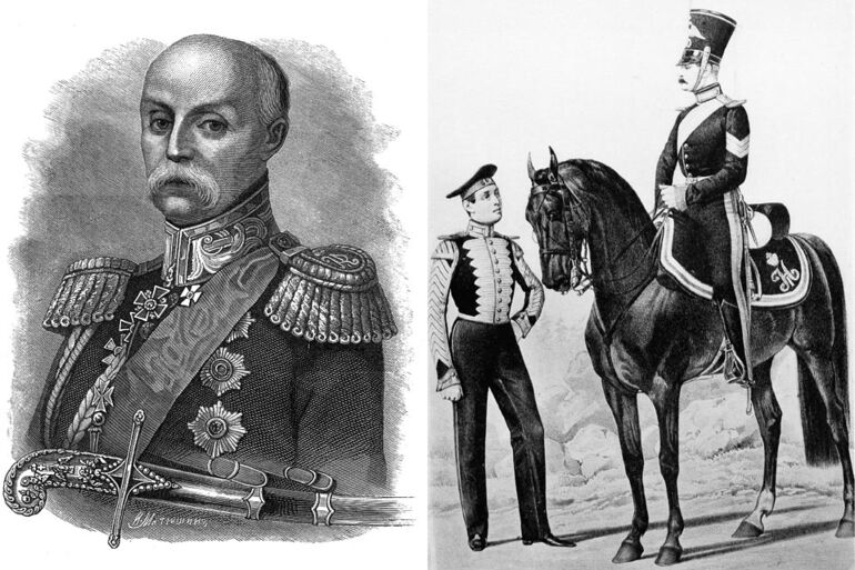 Генерал Фридрих Каспар фон Гейсмар и русские конные егеря в обмундировании времен польского восстания 1830-31 годов.