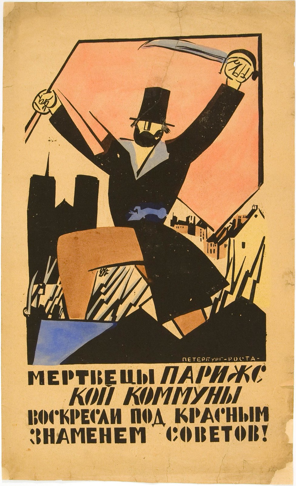 1921. «Мертвецы Парижской коммуны воскресли под красным знаменем советов!». Художник В.И. Козлинский. РСФСР.